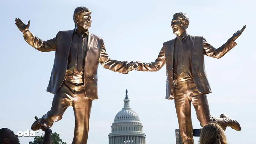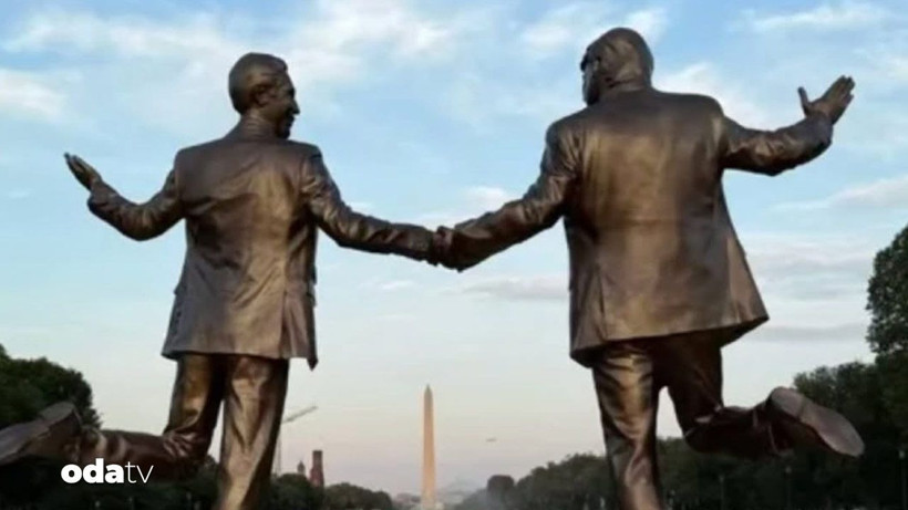 Washington, D.C.’de ABD Başkanı Donald Trump ile Jeffrey Epstein’in el ele tutuştuğu yaklaşık 4 metrelik bir heykel dikildi.
