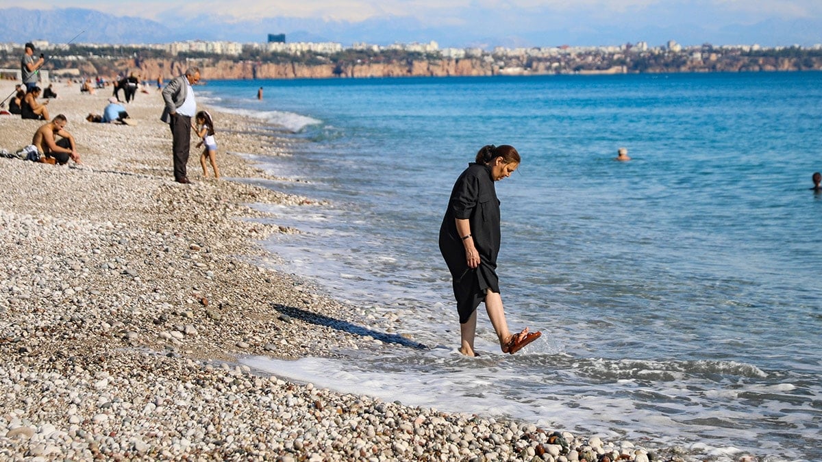 Bu durumu fırsata çevirenler sahilde yürüyüş yaptı, kimi Akdeniz’e girip yüzdü, kimi de kumsalda güneşin tadını çıkardı.